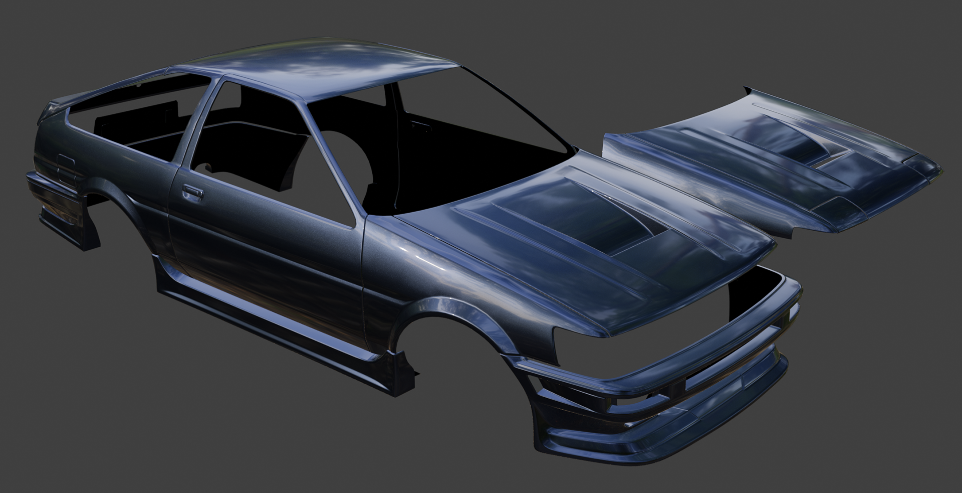 GOODLINE SPEC-G bodykit for toyota ae86 [trueno + LEvin]|Commissioned project for upcoming video game NIGHTRUNNERS™