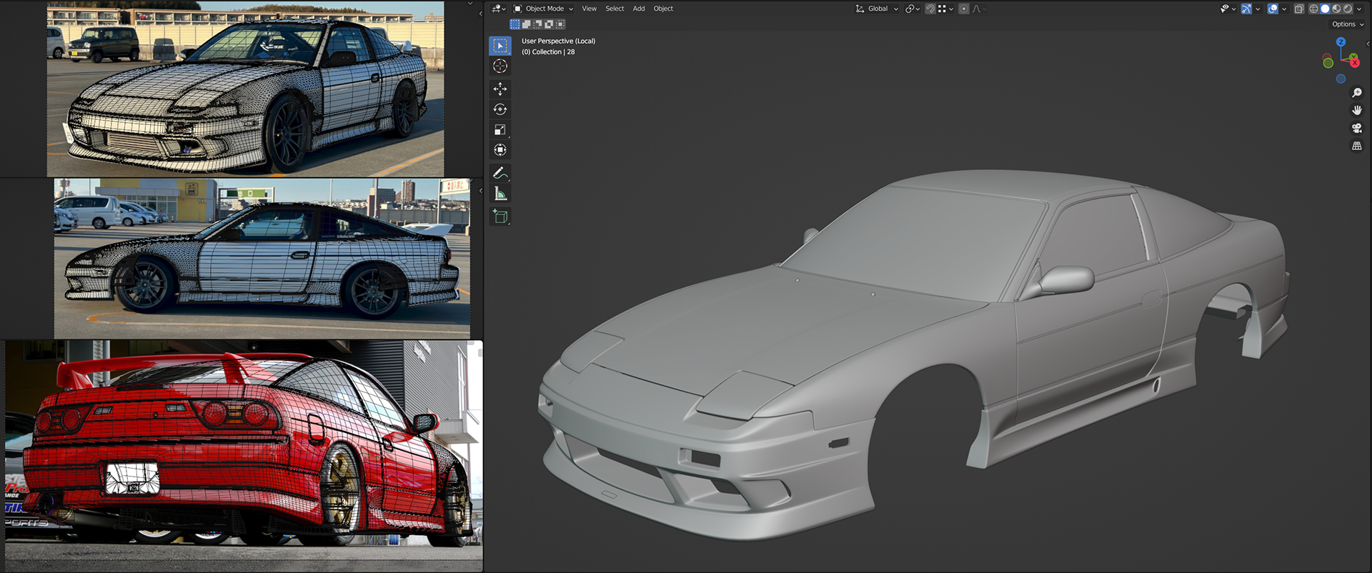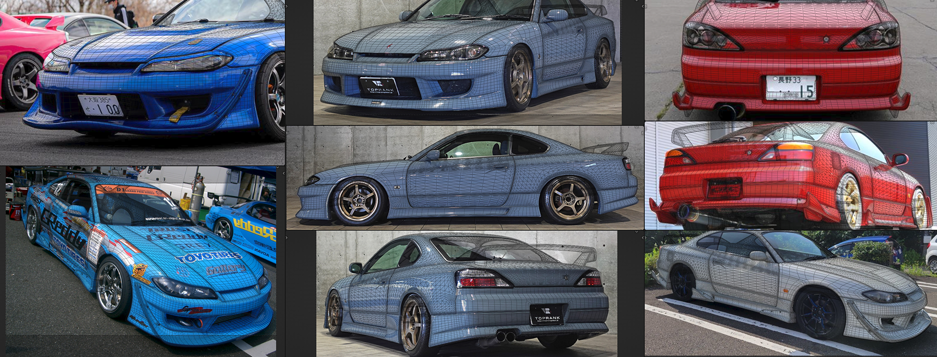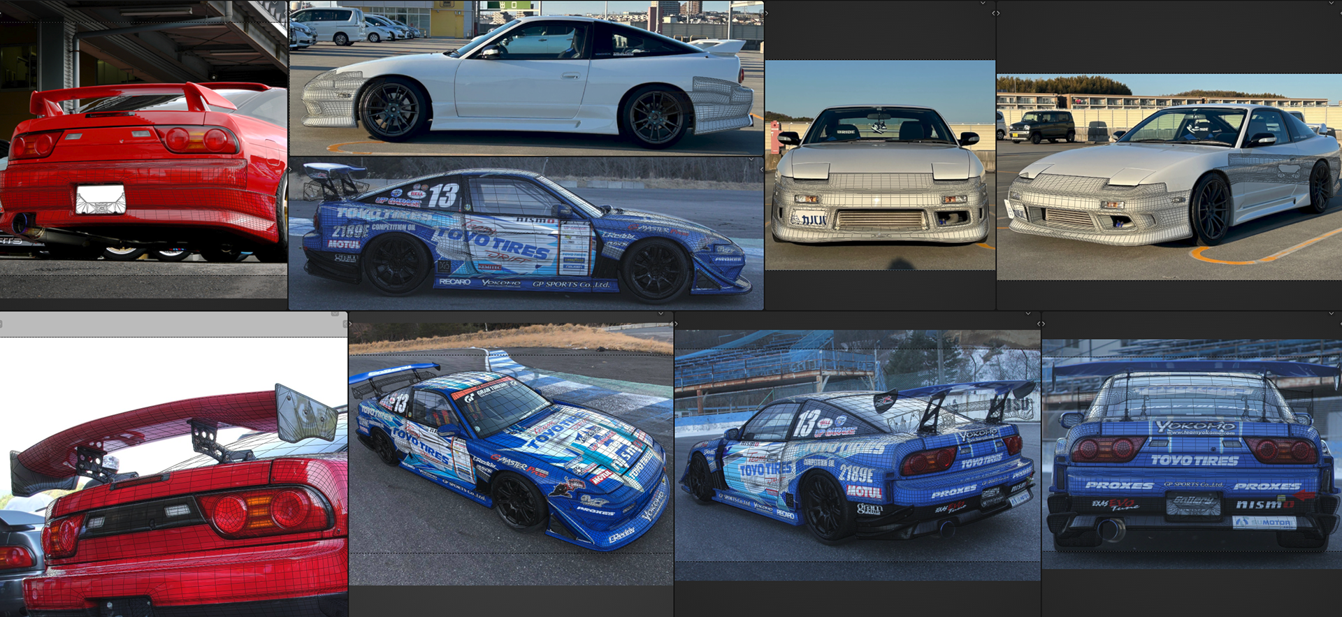 REFERENCE BOARD | A COMPILATION OF ONLINE PHOTOS, VIDEO CAPTURES, AND ARCHIVED MEDIA STUDYING HOW EACH COMPONENT OF THE BODYKIT ATTACHES TO THE CAR, as well as blind spots that are hard to see.